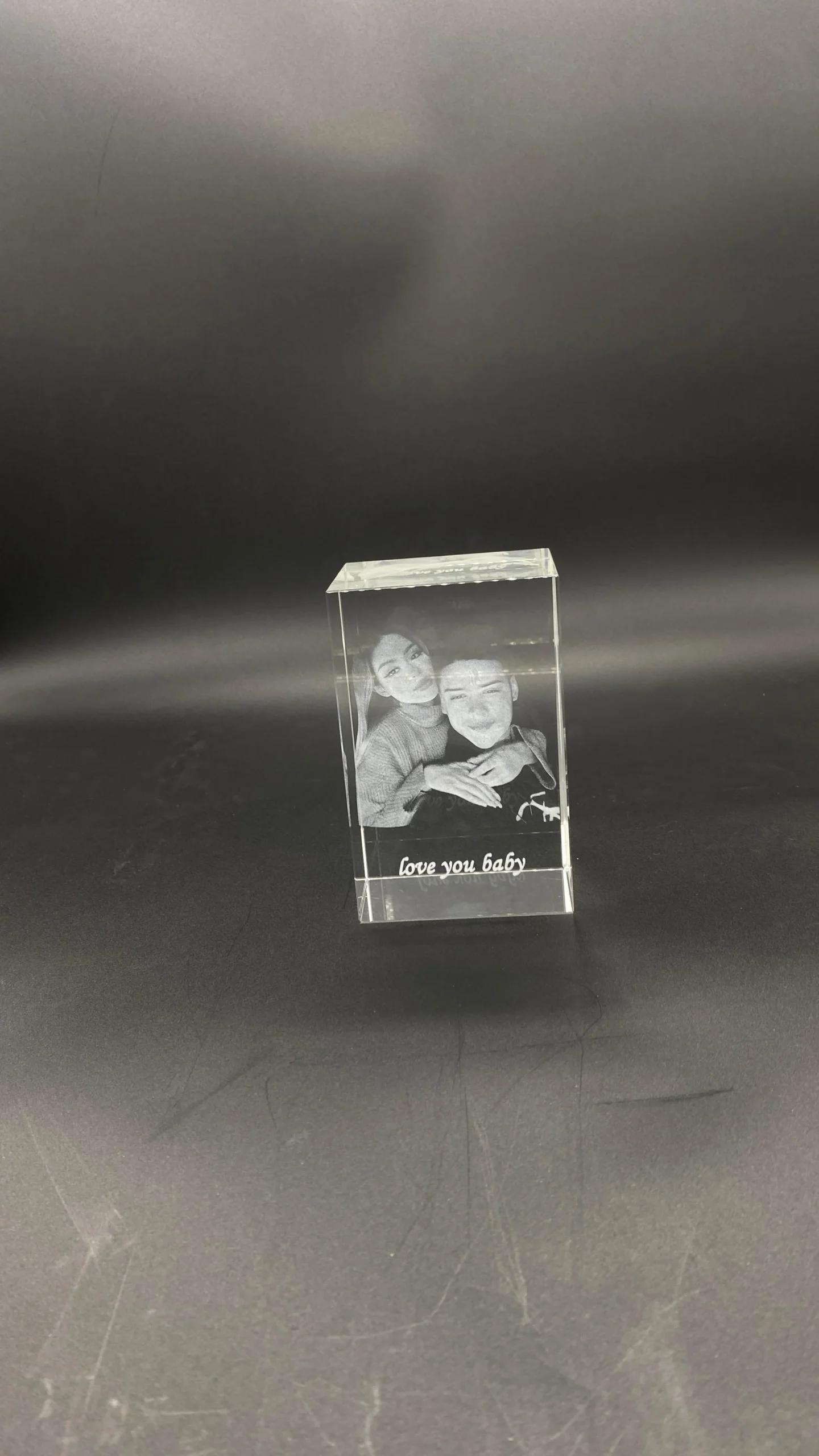 A premium optical crystal 10x10x8cm enhanced with laser engraving inside the optic crystal for its premium look