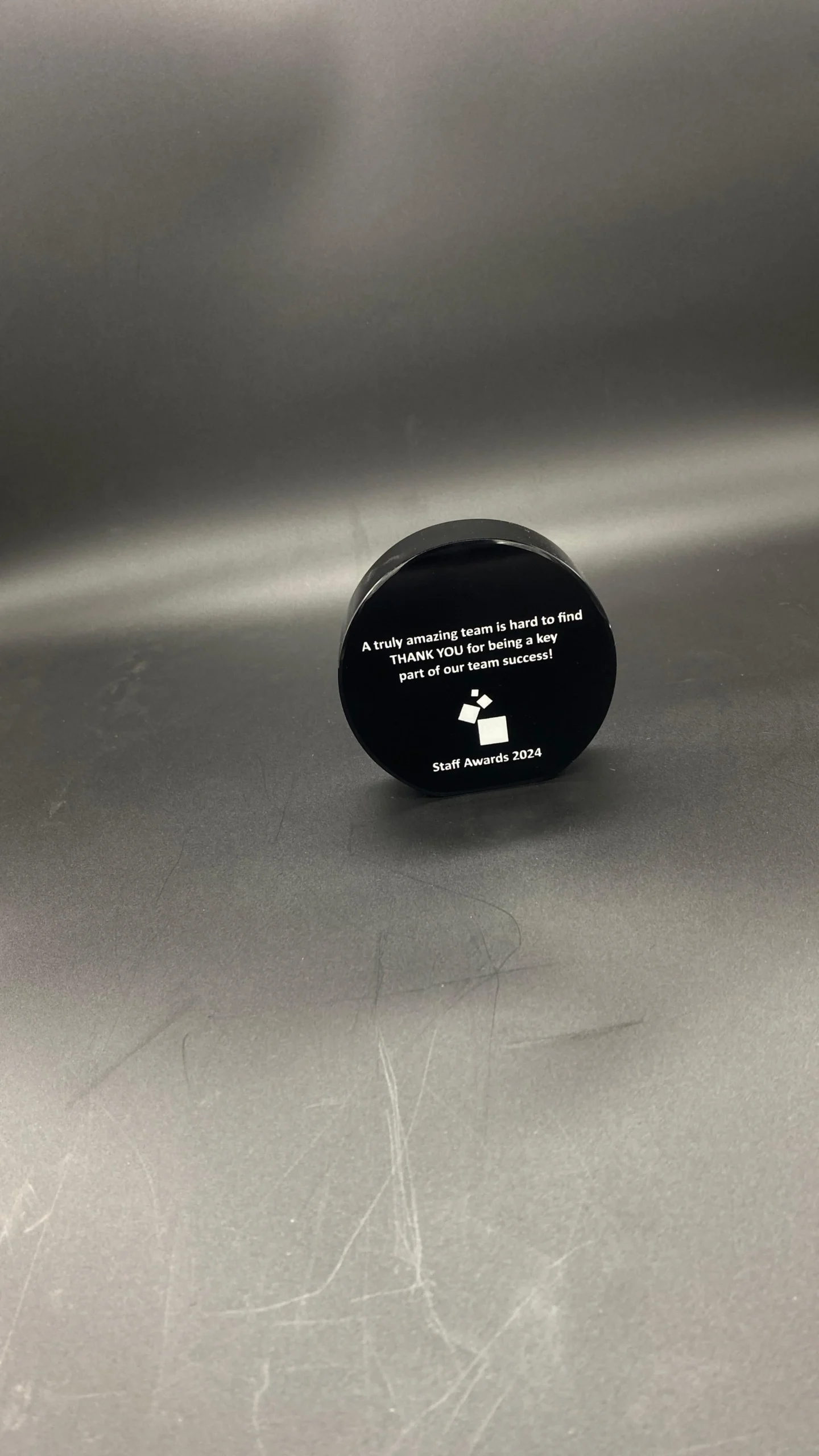 a circular slef stand trophy 40mm thick , enhaced with blasting and painting from front